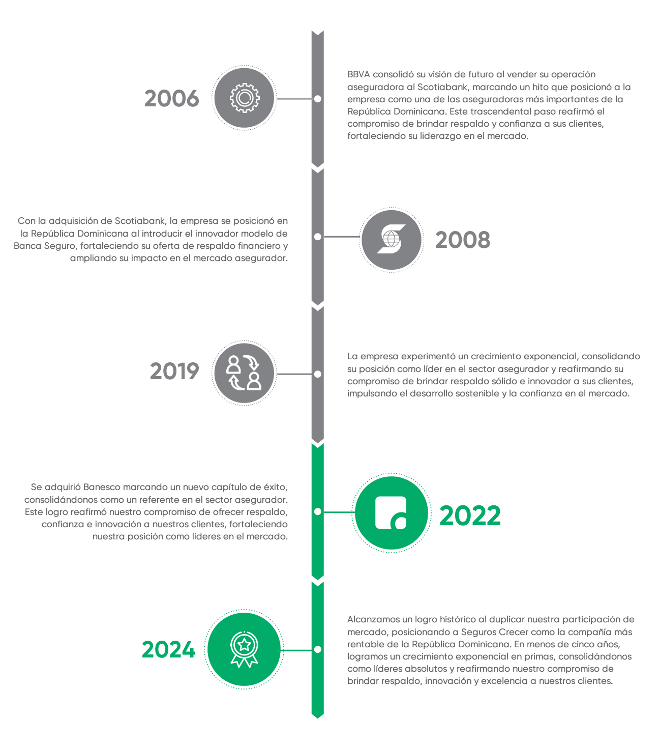 “En Seguros Crecer estamos comprometidos con el futuro de nuestros clientes. Operamos bajo tres pilares fundamentales que nos han garantizado el éxito: en primer lugar, nuestro enfoque centrado en el cliente, priorizando su bienestar y necesidades; en segundo lugar, el desarrollo de productos innovadores, acompañado de una eficiencia operativa que asegura un servicio al cliente de primera línea; y, finalmente, la implementación de políticas financieras sólidas, diseñadas para garantizar la solvencia de la empresa y responder con eficacia ante emergencias. Nuestro compromiso es trabajar con pasión y espíritu innovador, orientados al detalle y generando resultados de alto impacto para la sociedad dominicana, con transparencia e integridad siendo sostenibles en el tiempo.”